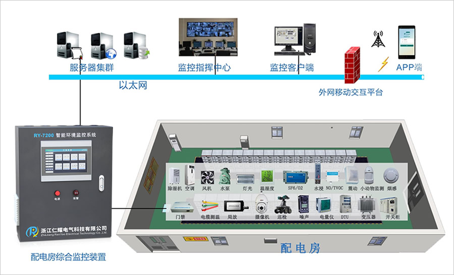 變電站在電網(wǎng)中作為電力的核心,具有建設數(shù)量多、地域分布廣的特點,擔負著所在區(qū)域的供電以及電力調度任務,變電站的安全穩(wěn)定運行直接影響區(qū)域用電安全,對社會的生產(chǎn)生活至關重要。變電站視頻及環(huán)境監(jiān)控系統(tǒng)是電網(wǎng)公司變電站智能化及安全生產(chǎn)的重要組成部分,為電網(wǎng)的安全穩(wěn)定運行提供了重要保障。隨著智能化變電站、變電站無人值守以及變電站運行集中監(jiān)控及遠程調度操作等電網(wǎng)運行模式的推進,變電站視頻及環(huán)境監(jiān)控系統(tǒng)在電網(wǎng)運行中提供了可視化的界面,系統(tǒng)重要性更加突出。已建成的常規(guī)變電站均未配置輔助控制系統(tǒng)及環(huán)境控制系統(tǒng),變電站內環(huán)境參數(shù)未考慮數(shù)據(jù)采集及在線監(jiān)測,配電室內環(huán)境控制均采用人工控制方式,由運行人員根據(jù)外部環(huán)境條件,到配電室現(xiàn)場巡視及操作,在各配電室內通過人工控制空調運行模式、風機啟停、百葉窗開關等方式地控制配電室環(huán)境,無法實現(xiàn)自動控制和在線監(jiān)測。而采用變電站環(huán)境監(jiān)控系統(tǒng)配備數(shù)據(jù)采集單元、環(huán)境控制(溫濕度)單元、照明控制單元、火災報與消防系統(tǒng)接口及一體化智能控制管理平臺,實現(xiàn)了配電室內的溫度、濕度、水浸、SF6濃度、噪聲、H2S等環(huán)境信息進行實時采集、處理和上傳,對配電室內環(huán)境狀態(tài)、空調、風機及照明等輔助設施實現(xiàn)在線監(jiān)測,根據(jù)各種環(huán)境條件及運行環(huán)境要求,通過一體化環(huán)境管理平臺實現(xiàn)站內輔助設備進行聯(lián)動,完成變電站站端的環(huán)境智能控制